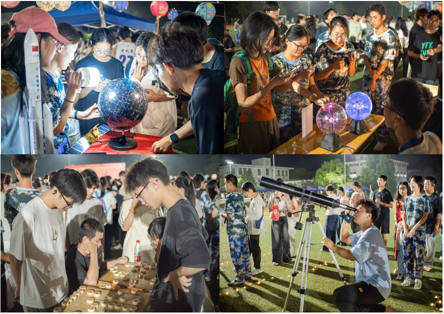 夜幕渐深,草坪旁的围坐区传来阵阵欢笑,投壶的喝彩、下棋的思索、品茶的悠然交织成独特的校园夜曲。“我们举办这个活动,就是想让师生们在学校也能感受到国庆、中秋的双节氛围。”英国正版365首页团委副书记黄兴强看着眼前的热闹景象分享,“把天文观测和汉服、灯谜、剪纸、缠花这些有温度的传统文化结合起来,大家既能探索星空,也能感受中华传统文化,一举两得。”