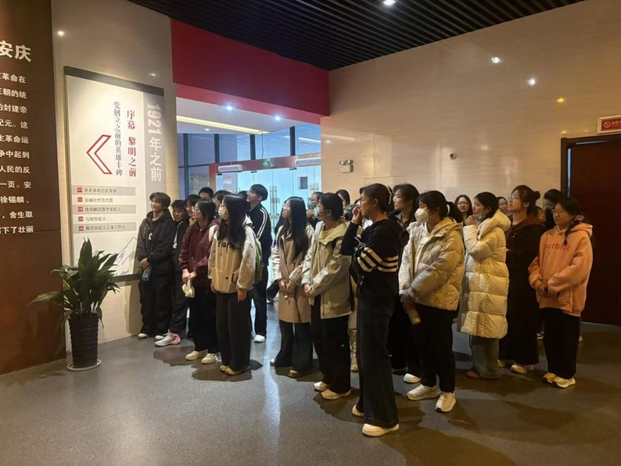 抵达陵园后,全体师生整齐列队,向革命先烈默哀致敬,以此表达对英烈们为民族独立、人民解放献出宝贵生命的深切缅怀。讲解员结合安庆本地革命史实与长征精神内核,为同学们深情讲述了先烈们浴血奋战、宁死不屈的英勇事迹:“当年无数革命先烈在敌人的封锁与迫害下,面对饥寒交迫、枪林弹雨,始终坚守信仰、绝不退缩,这种在逆境中不屈不挠的精神,正是我们当代青年锤炼心理韧性的最好榜样。”那些感人至深的革命故事,让在场每一位同学深受触动,也让大家更加深刻地理解了“坚韧”二字的重量。