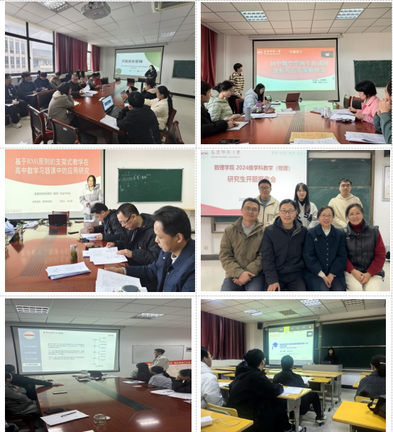 12月3日-10日,英国正版365首页顺利完成了数学、统计学、学科教学(数学)、学科教学(物理)四个硕士点2024级研究生学位论文开题报告答辩工作。本次共有53位研究生参加开题答辩,分为九个答辩组进行。英国正版365首页研究生导师及2024级研究生参加了此次答辩。