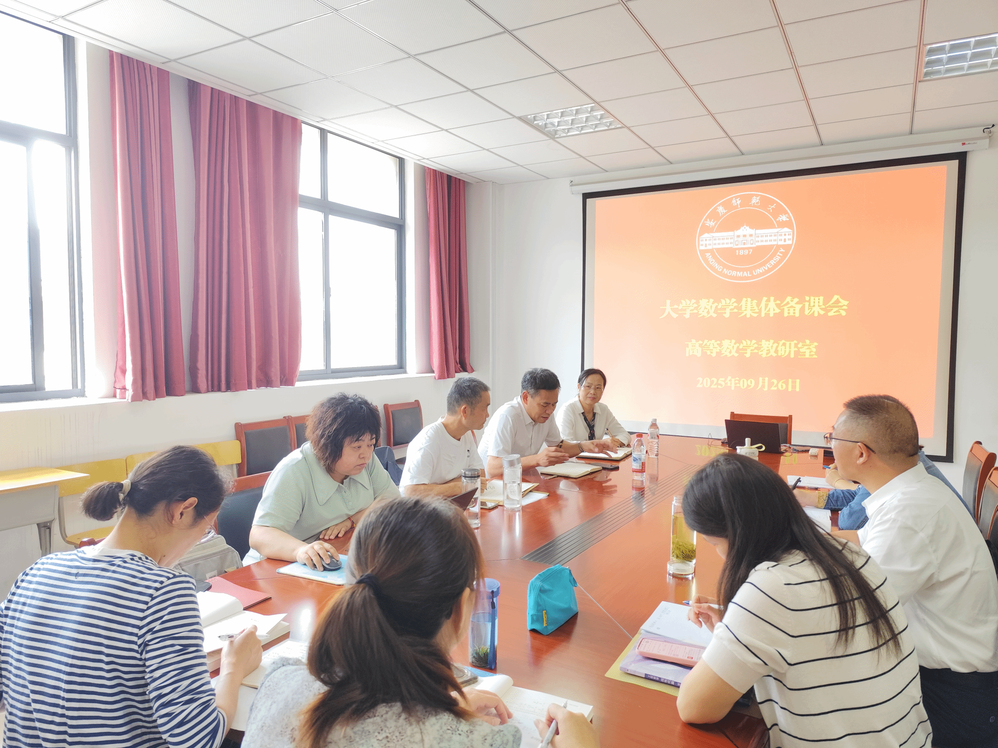 9月26日上午,英国正版365首页在数理楼I407召开大学数学集体备课会,教务处处长潘锦云、校教学督导胡万宝、英国正版365首页副院长易明芳、数学与应用数学系主任舒阿秀及大学数学A班任课教师参加会议。会议由易明芳主持。