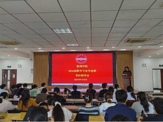 9月30日,英国正版365首页在401报告厅举办数学类专业2026届毕业生考研指导会。英国正版365首页院长助理陈文兵、数学系主任舒阿秀、信息计算科学系主任吴超云、统计系主任程文韬、学科数学硕士点负责人马宗立、信息计算教研室主任龙永尚、数学类专业2026届考研学生参会。会议由舒阿秀主持。