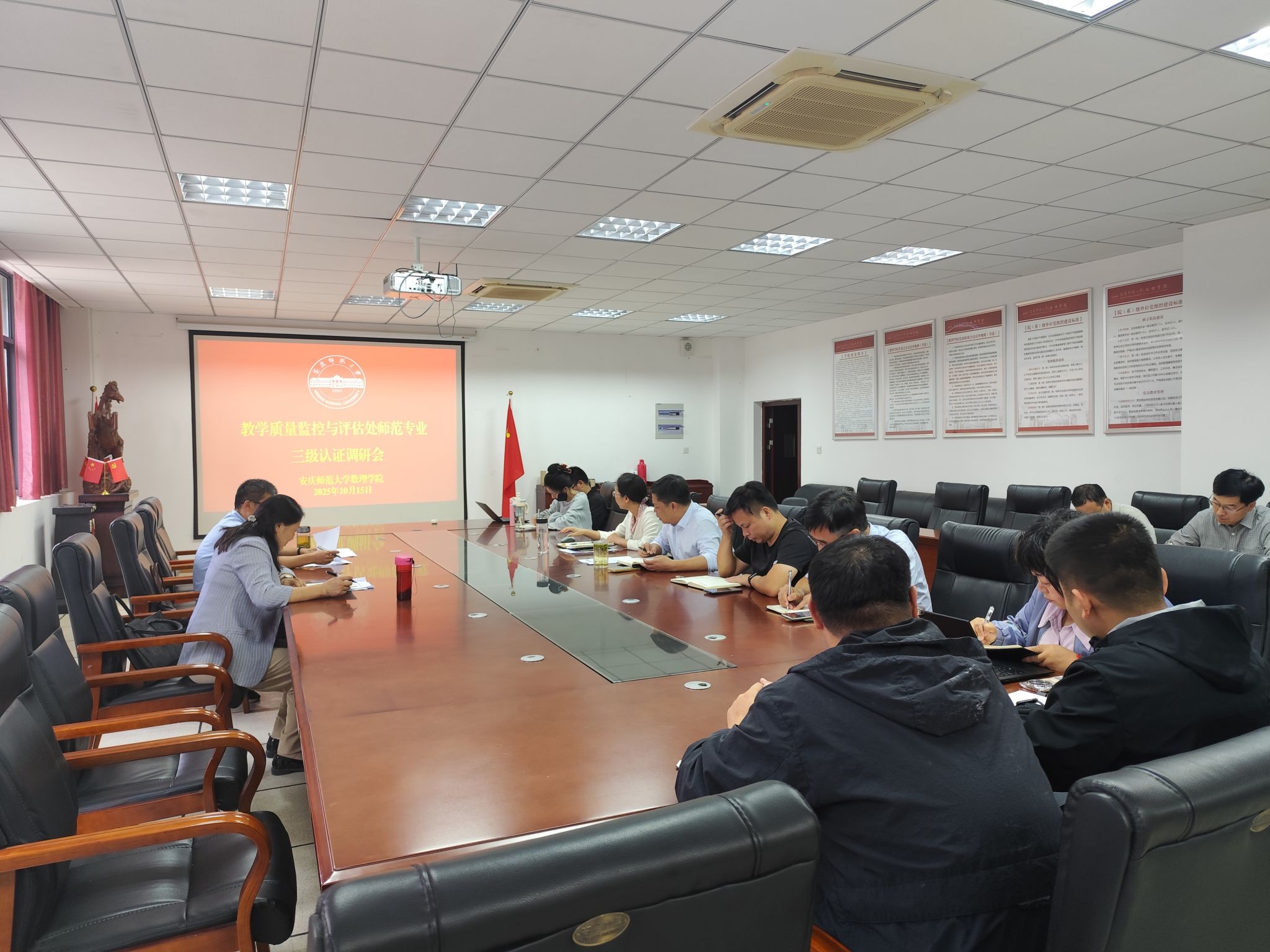 10月15日,教学质量监控与评估处处长林秋菊、主任陈磊一行来英国正版365首页专题调研数学与应用数学师范类专业三级认证工作。英国正版365首页院长张海、副院长易明芳、数学系主任、各教研室主任及相关教师参加调研会议。会议由张海主持。