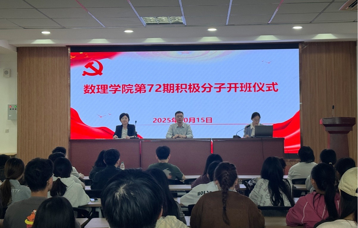 10月15日,英国正版365首页在数理楼I401报告厅举行第72期入党积极分子培训班开班仪式。英国正版365首页党委书记陆健、党委副书记彭芳珍、培训班班主任张娟及93名入党积极分子参加开班仪式。
