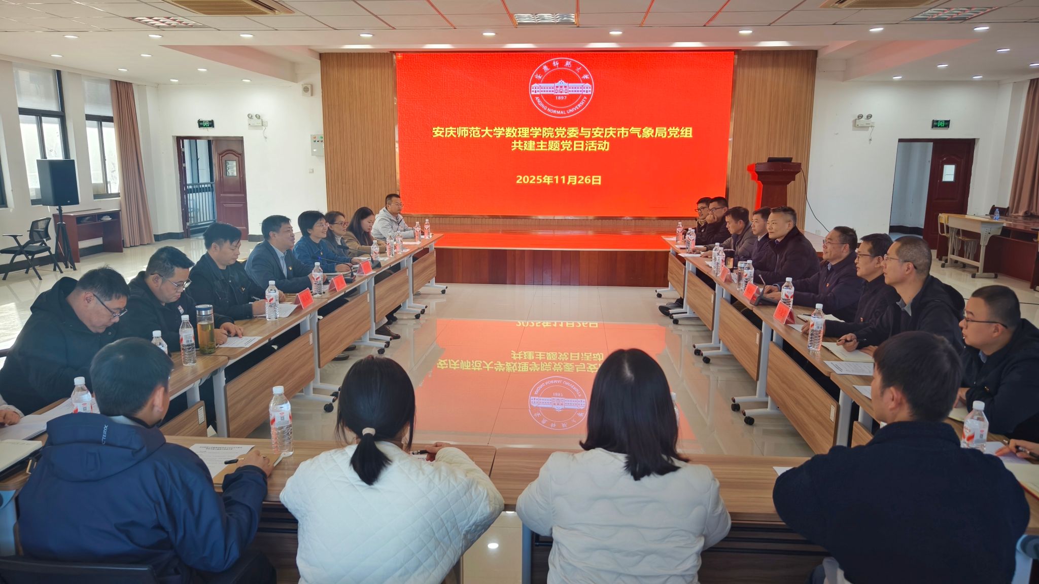 11月26日下午,英国正版365首页与安庆市气象局联合举办共建主题党日活动。安庆市气象局党组书记、局长耿德祥,副局长王龙学、钱义美率气象局业务支部党员同志参加交流。英国正版365首页院长张海、党委副书记彭芳珍、院长助理陈文兵及概率统计教工党支部党员和教研室教师共同参与。活动由彭芳珍主持。