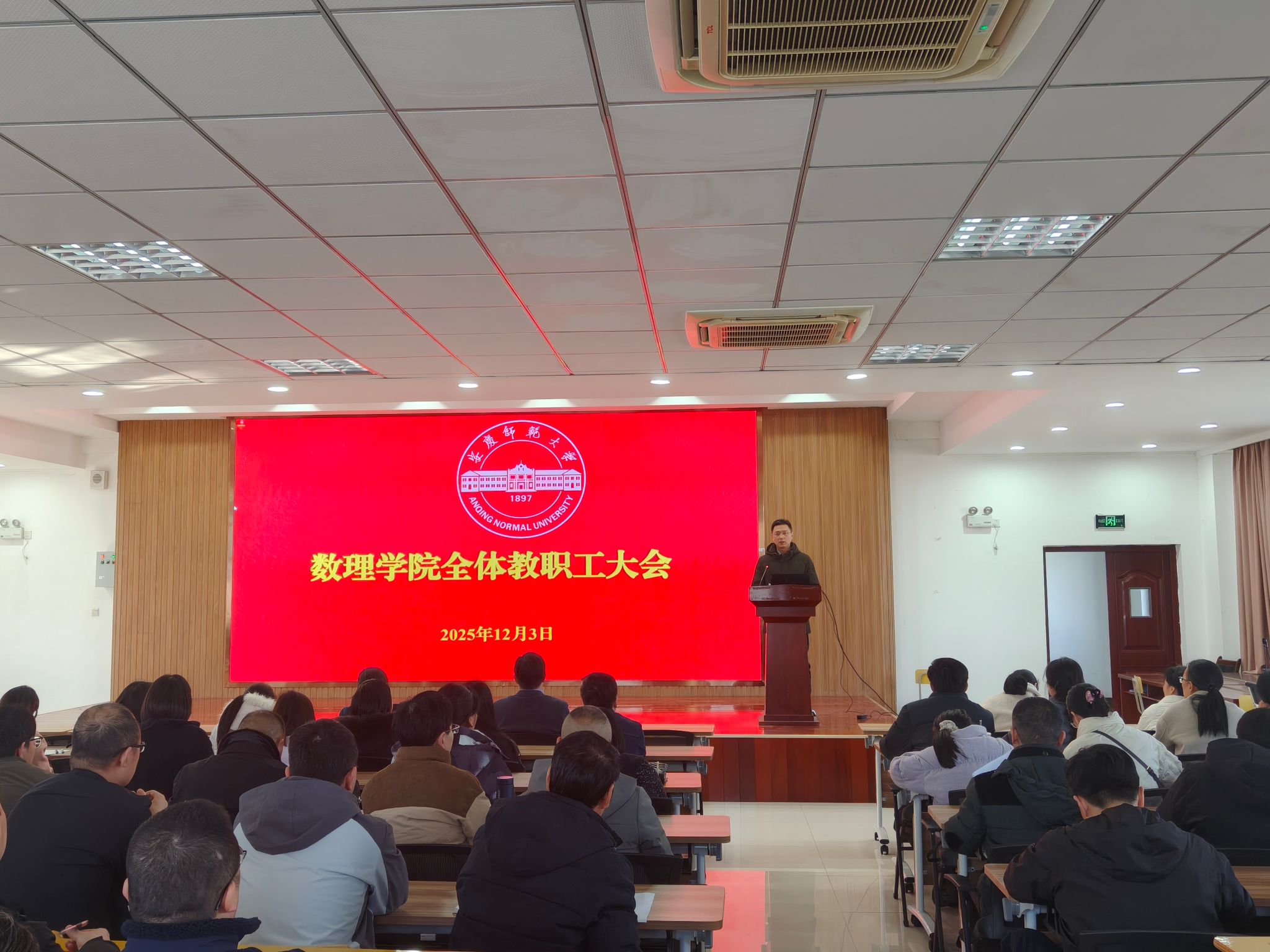 12月3日下午,英国正版365首页在I楼401报告厅召开全体教职工大会。英国正版365首页党委书记陆健、院长张海、副院长易明芳及全体教职工出席会议。会议由陆健主持。
