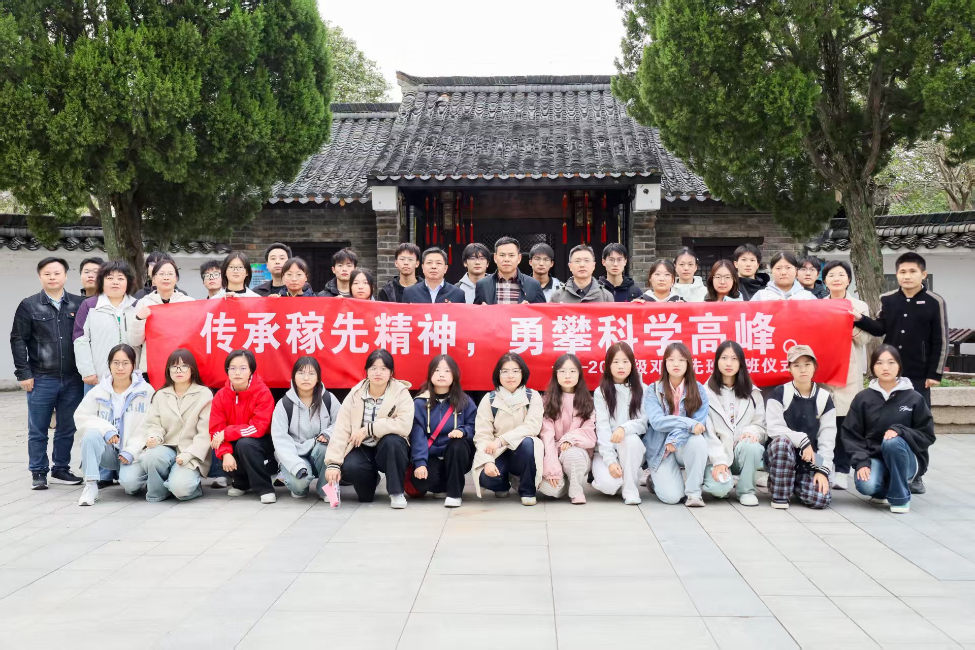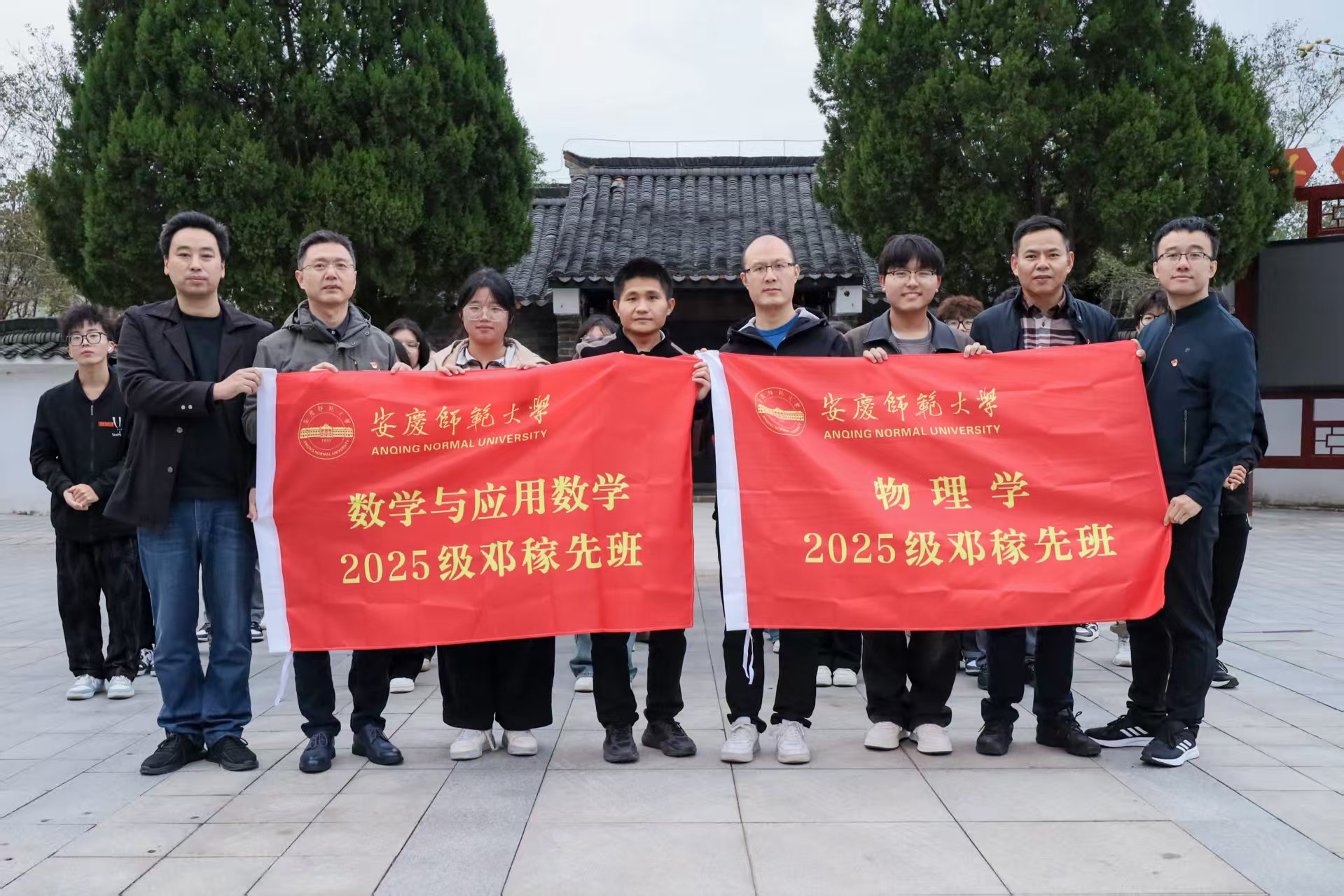 开班典礼上,潘锦云、陆健共同为2025级数学与应用数学、物理学“邓稼先班”授旗。